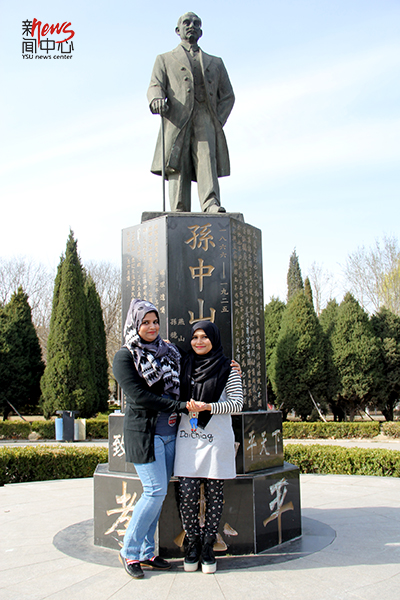 站在孙中山先生的雕像下,感受伟人的气息。(毕佳畅)