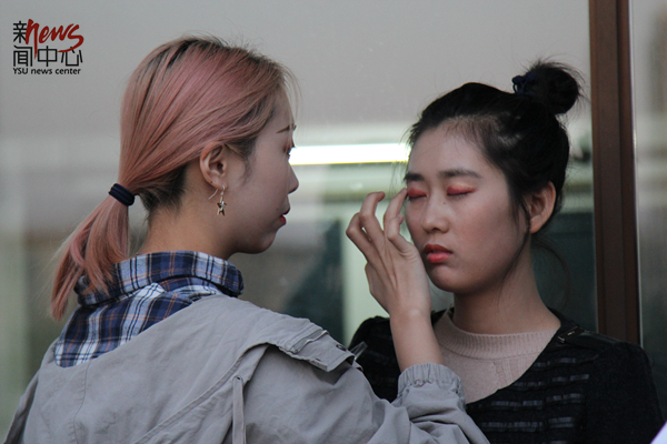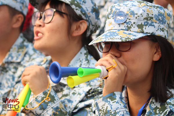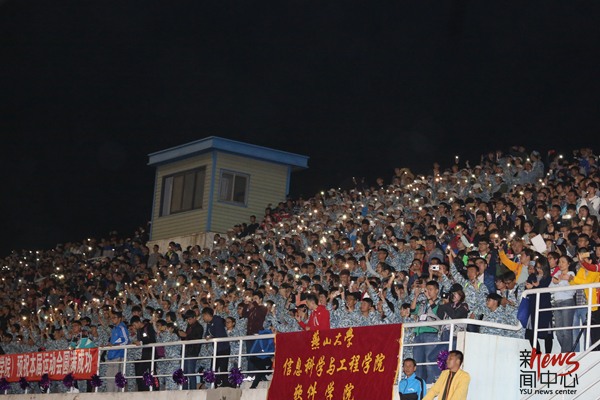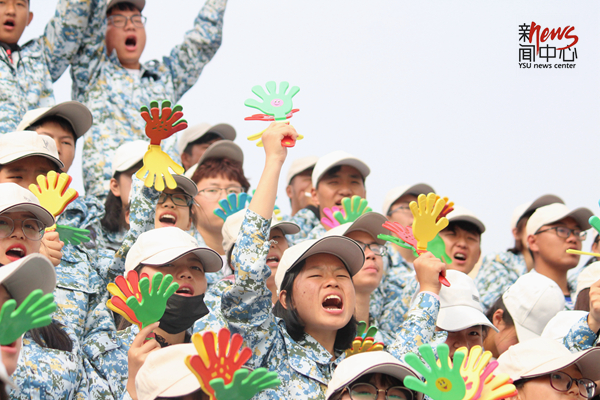 艺术与设计学院的同学用一曲《重返十七岁》为运动员们加油(狄奕佳)
