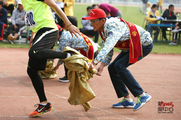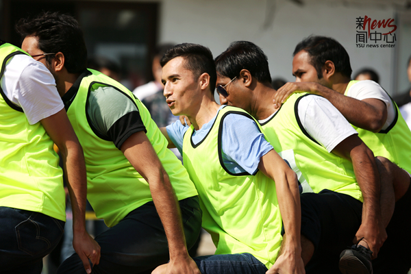 国际教育学院学生参加趣味项目火车跑(李晖)
