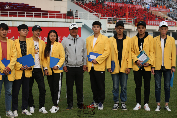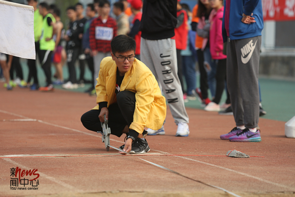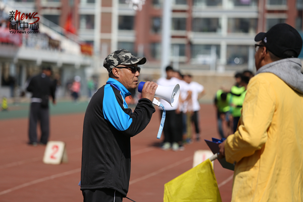 由体育学院学生组成的裁判员队伍都穿着鲜明统一的黄色外套(李岩彬)