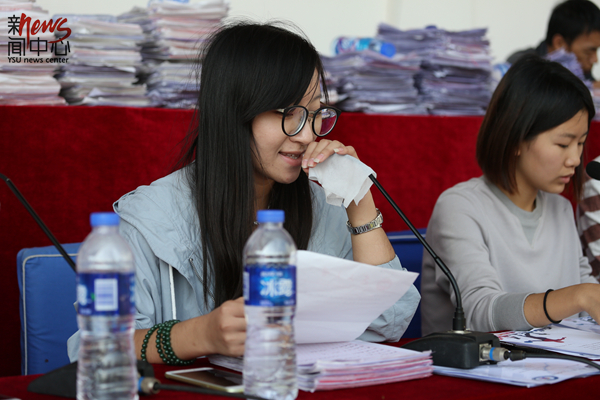 广播站同学播报着“堆积如山”的加油稿(李晖)