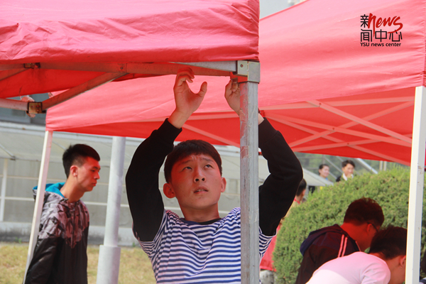 清晨6:30各个学院学生会的同学开始忙活起来了(李晖)