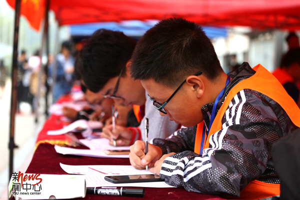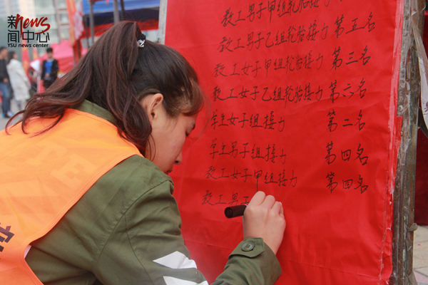 有的人负责把自己学院取得的名次及时在光荣榜上更新(郑钰渲)