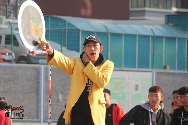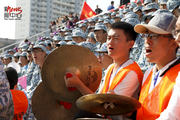 除了鼓以外,“大镲”在加油助威时也帮了大忙(杨林阚雪)