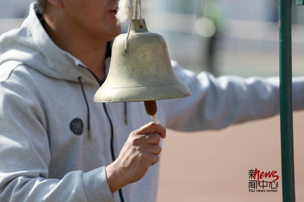 也为选手们摇响最后一圈的提示铃(贾博森)