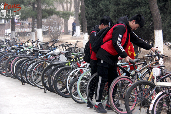 自行车连起的直线,是校园志愿服务的明信片(王寅)