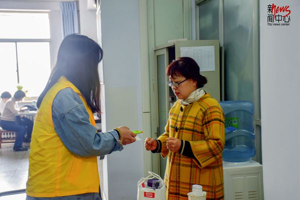 文法学院志愿者为图书馆借阅室的老师送去护手霜,
