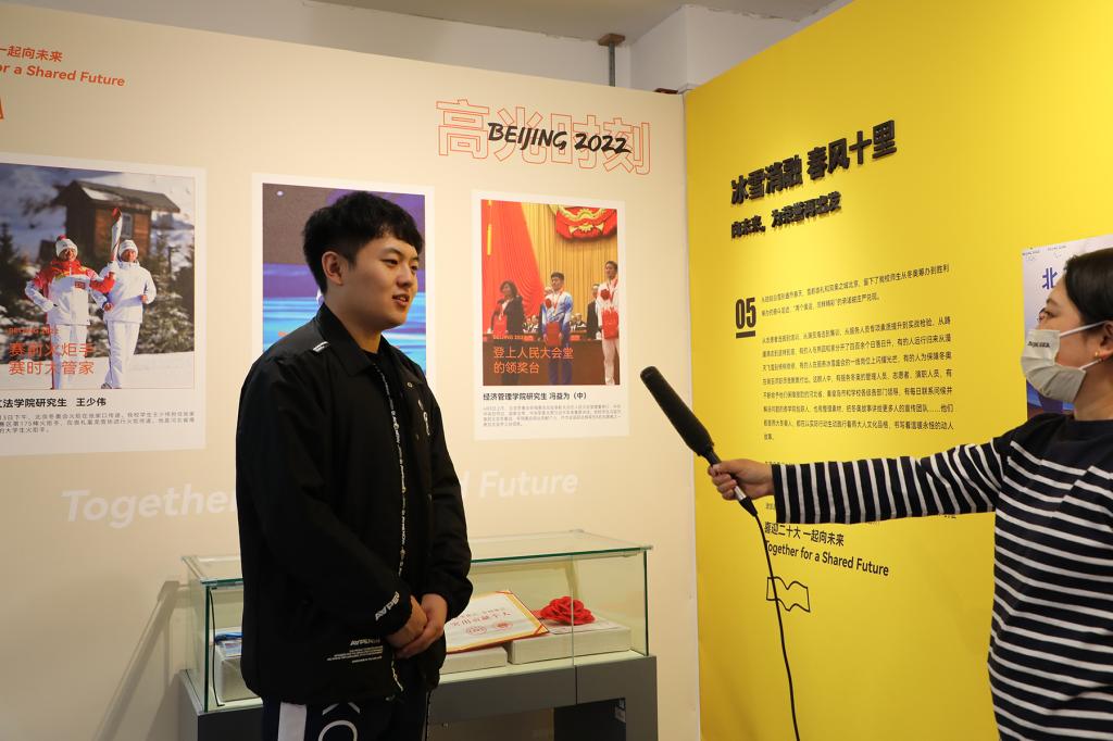 志愿者侃侃而谈,讲述着燕大人在冬奥的那些故事