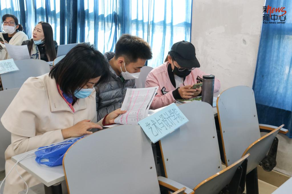 秋天的硕果不属于春天的赏花人,而属于春天的耕耘者。春华秋实,每一位燕大学子不仅肩负着故乡与远方,还拥有着燕大老师的爱与期望。在招聘会各学院值班工作点,各个学院的老师们聚精会神地讨论,一丝不苟地记录,铭刻燕大学子们成功的喜悦与感动。当第一份签约成功的喜报传来,老师们露出了最欣慰的笑容。