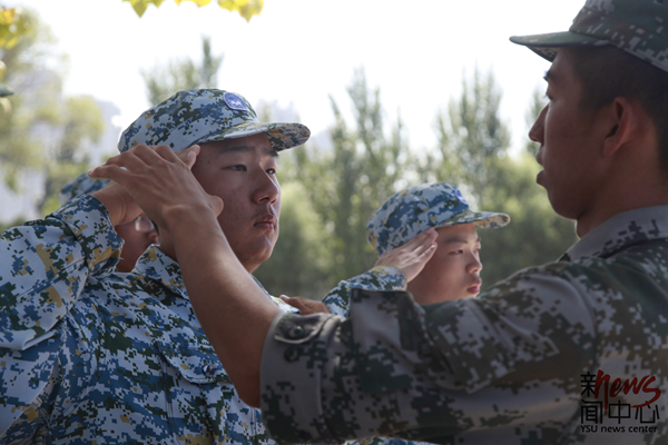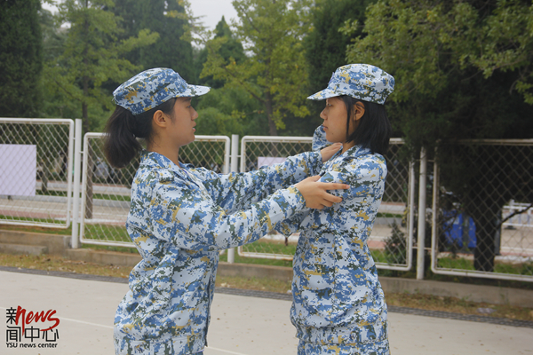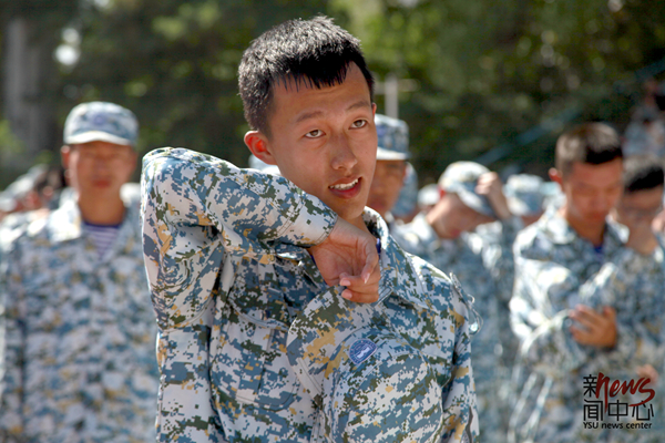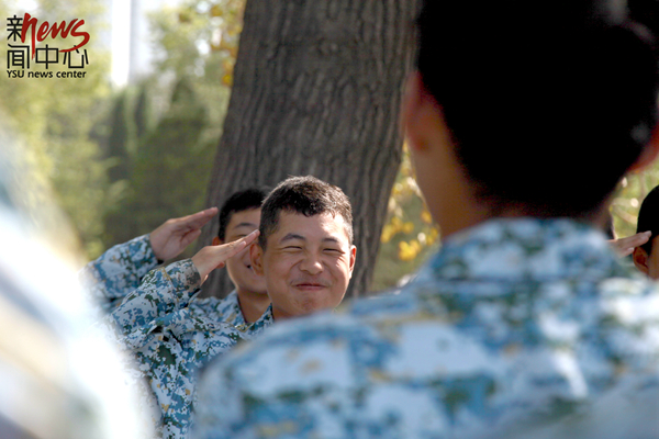 教官:”你们三个动作一致。“学生:”报告教官!有点困难。“(李晖)