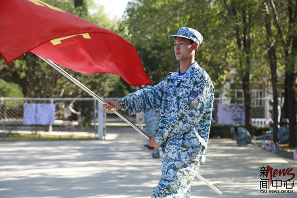 军训期间,国旗护卫队的军姿展示,带给我们榜样的力量。(王英骏)