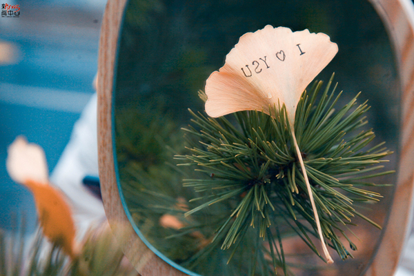 被松枝托起的银杏叶,也是“我爱燕大”的一种别样表达(贾志阳)
