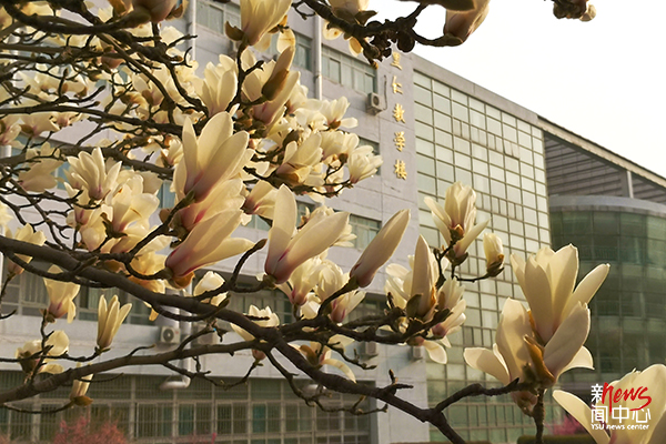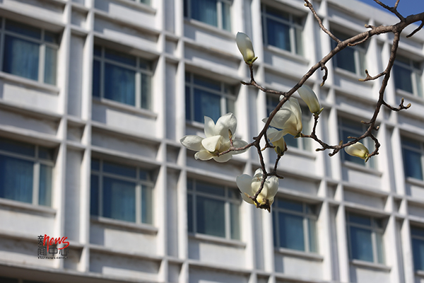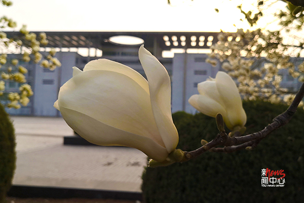 玉兰绽放的枝头