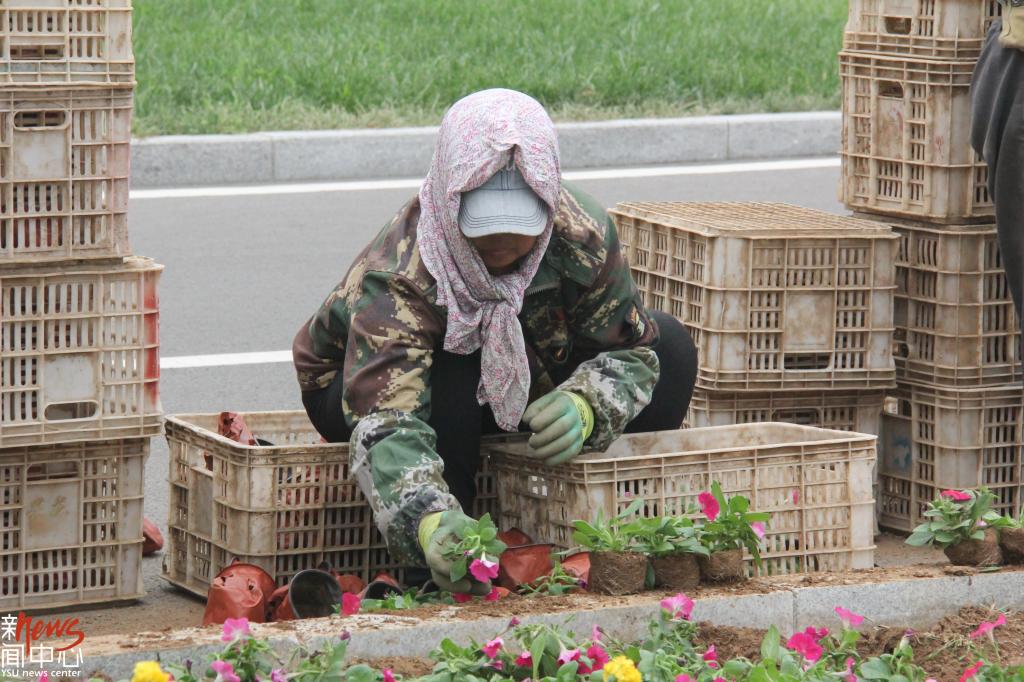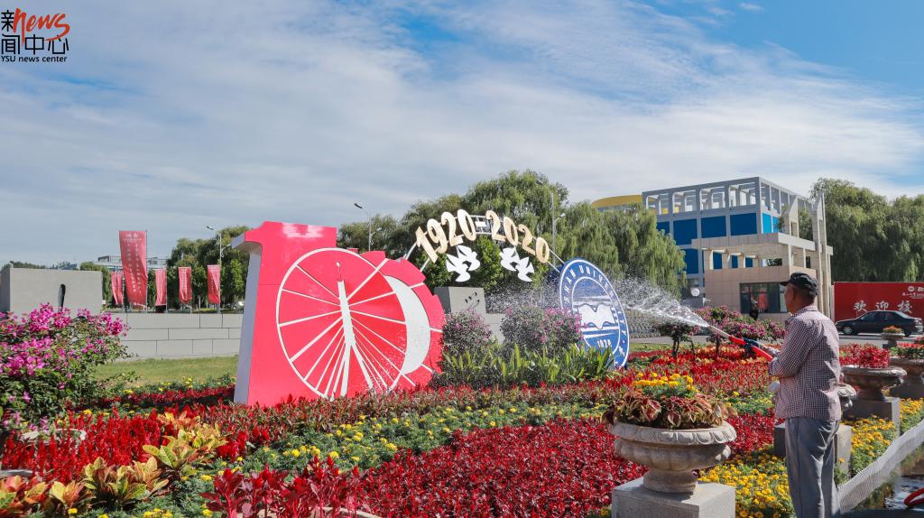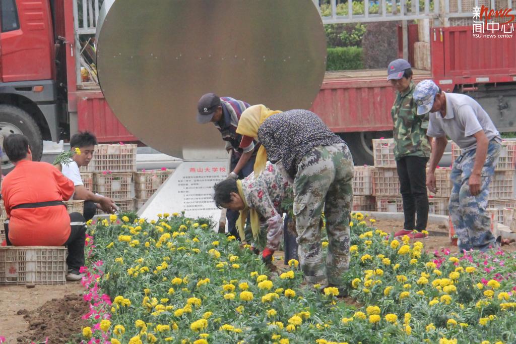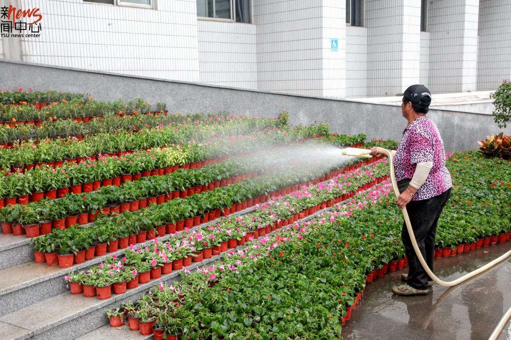图书馆门前,校园正门后,那些校园随处可见烘托校庆氛围的花朵,它们因生而绚丽,更因备受呵护而常开不败。与夺目的花朵相较,养育它们的工人或许显得有些蓬垢,但也正因这些鲜为人见的幕后,才常有未凋之花迎风摇曳。