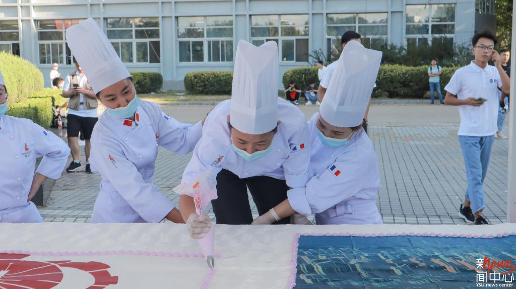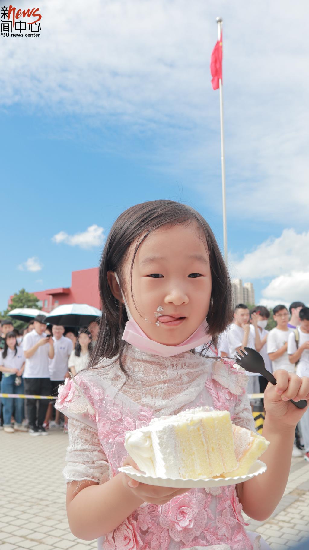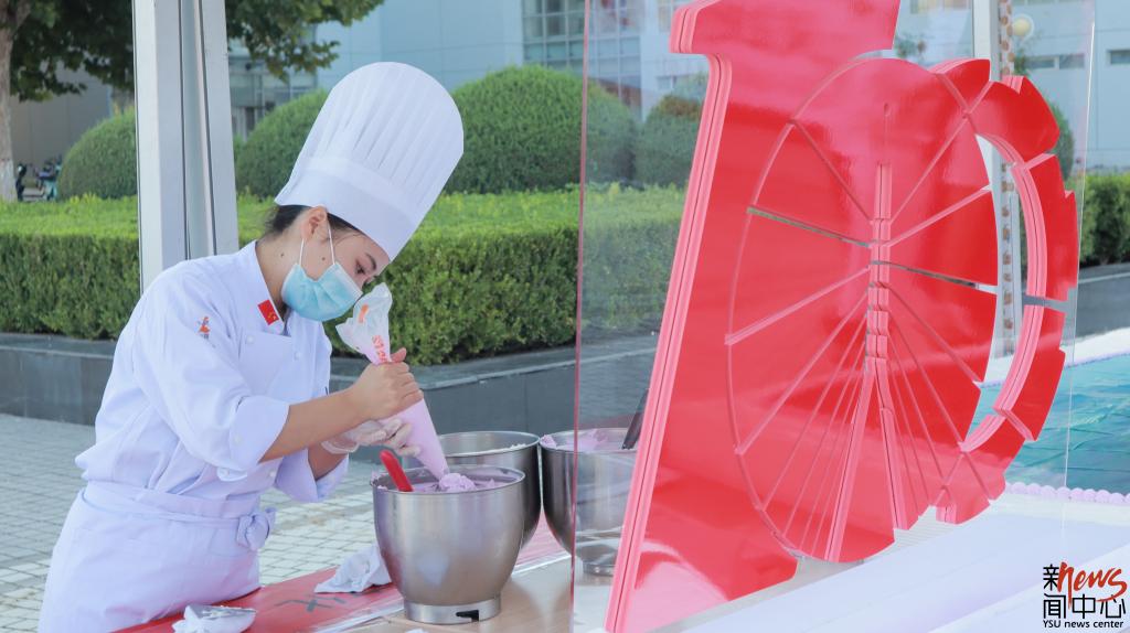 凌晨两点出门的蛋糕师傅,一次次调整角度,工作数小时雕琢完成校庆蛋糕的每一个细节之处。香甜的奶油沾染在小朋友的嘴角,带有燕大百年校庆标识的矿泉水也带着回首独立办学路的甘甜。