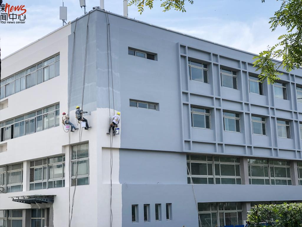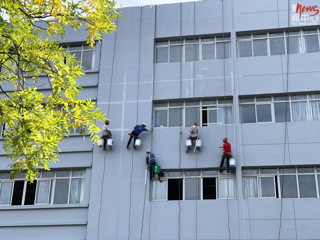工人们为教学楼换上新衣,迎接新的百年(杨若熙)