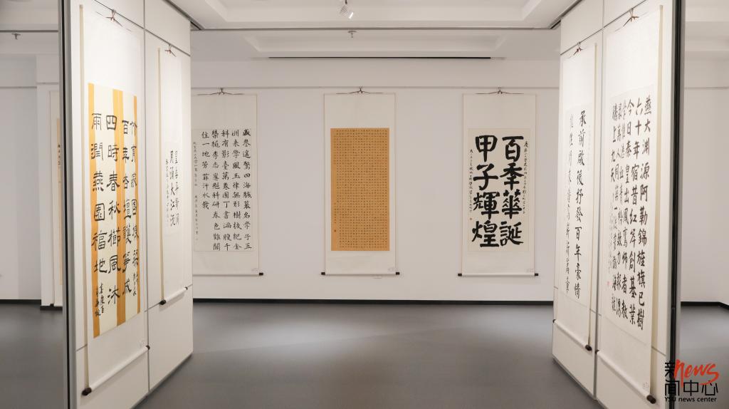 百年华诞,甲子辉煌,书法展情,祝福满盈。
