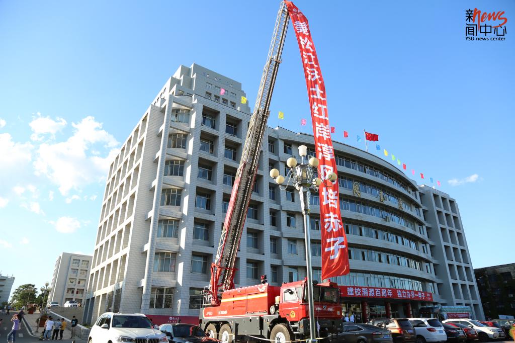 横幅飘飘,图书馆前百年气势恢宏(王亚培)