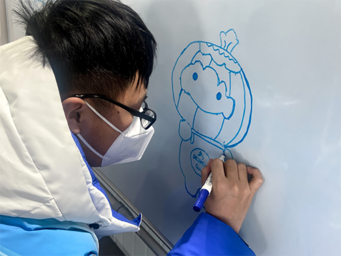 用涂鸦笔绘出心中的可爱的雪容融形象,装饰观众暖棚。