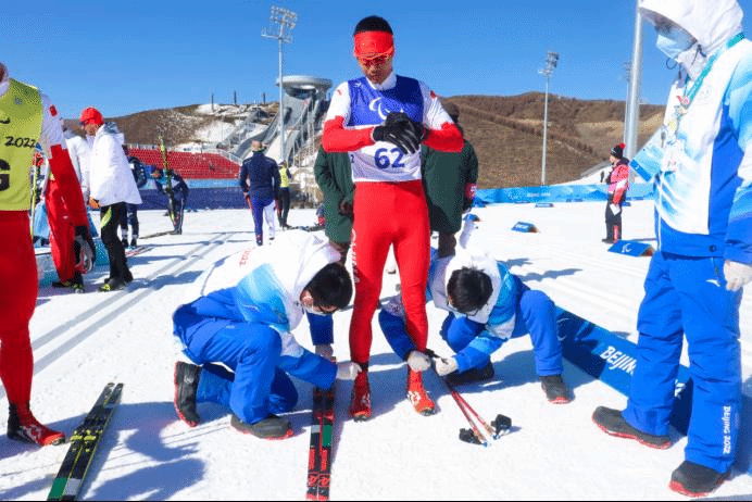 3月7日,残奥越野滑雪男子20公里视障的比赛前,