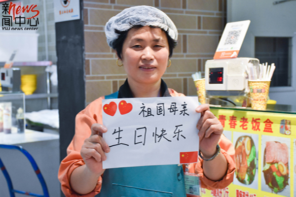 相对于年轻人,老师和学校职工们为祖国庆生的方式似乎比较简朴,却也各尽其能。红色旋律讲坛讲出了祖国发展之艰辛、前路之光明——