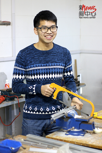 马玉昊,来自2013级机械制造及其自动化3班。他多次参加科创比赛,曾获全国大学生机械产品数字化设计大赛三等奖;第七届全国大学生机械创新设计大赛河北省分区一等奖、河北省大学生工程训练综合能力竞赛二等奖;乌鸦传媒“三维数字建模能力”大赛二等奖、第二十届“世纪杯”大学生课外学术科技作品竞赛一等奖;机械工程学院“机创杯”二等奖、三等奖,制图竞赛(三维部分)一等奖。他还申请了实用新型专利一项。他参与的2015年大学生创新训练计划项目已顺利结题。他的座右铭是:书山有路勤为径,学海无涯苦作舟。