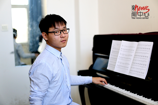 责任之星刘钰栋:飞舞的手指在钢琴上弹奏优美的乐章。(蔡巧怡/摄)