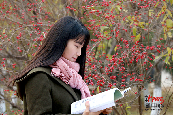 学习之星杨霞:在图书馆里,静静地享受阅读的美好时光。