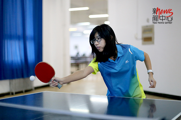 运动之星杨嘉琪:手握球拍,以最快的速度迎接挑战。(蔡巧怡/摄)