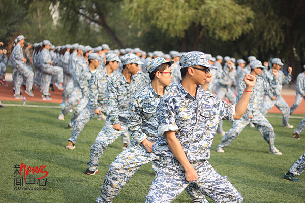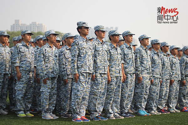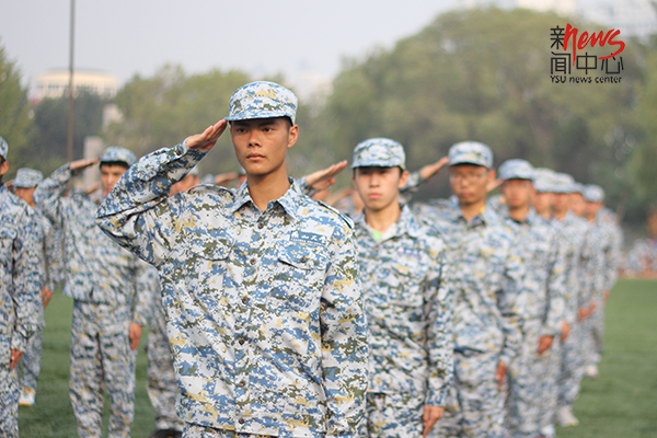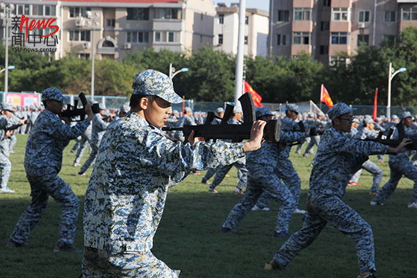 那天,天气很好,在阳光的沐浴下,我们迎来了我们的军训生活。(房振春 摄)