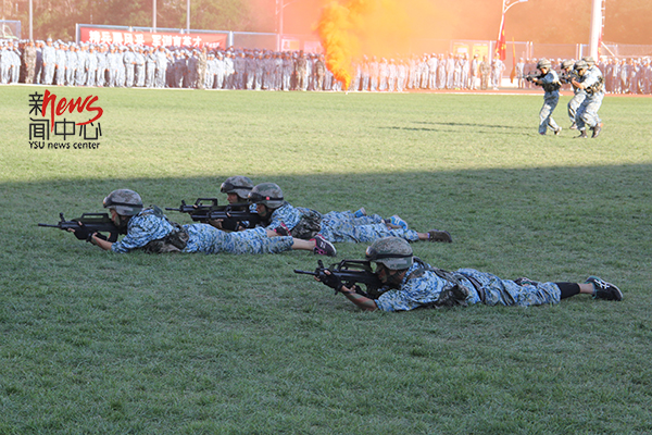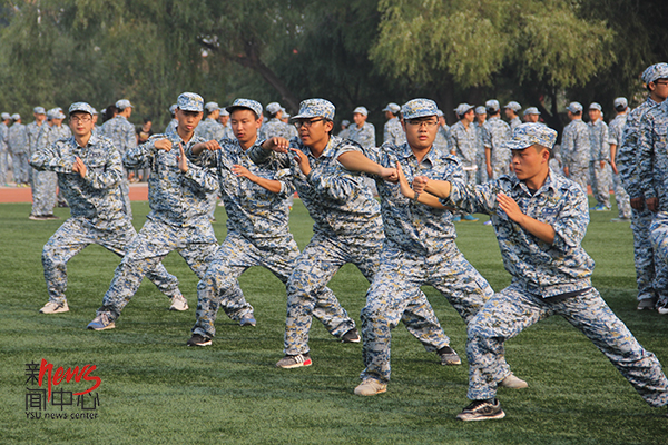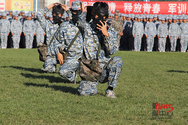 军训汇报演出,向学校汇报一下我们这几天的成长。(高婷婷 摄)