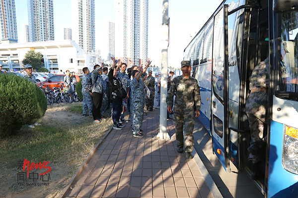 与教官挥手说声再见,感谢这七天的指导与陪伴。(王云飞 摄)