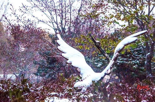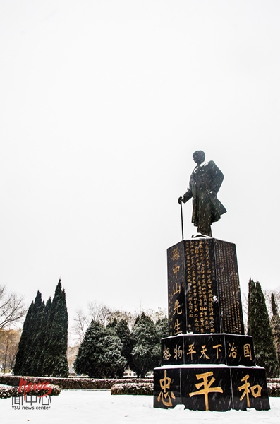 雪中的孙中山雕像更加庄严(王三众/摄)