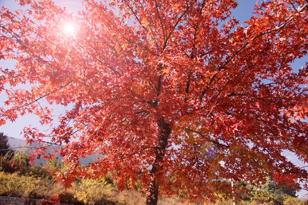 阳光穿过火红的枫叶(徐兆凯/摄)
