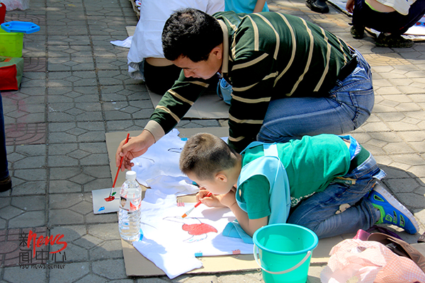 我和爸爸一起画(王雪 摄)