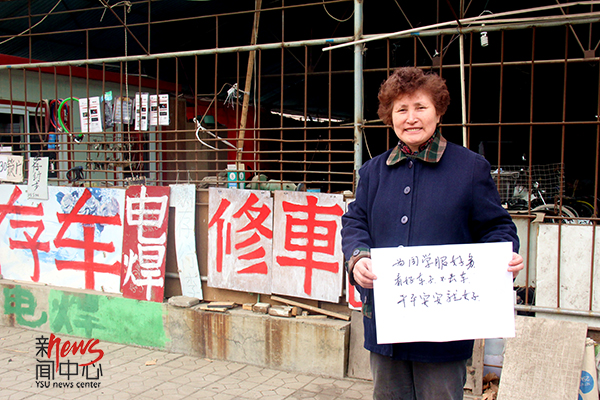 东校区五舍旁修车棚阿姨张玉芹:“为同学服好务,看好车子,不丢车。平平安安就好。”(高茜/摄)