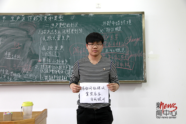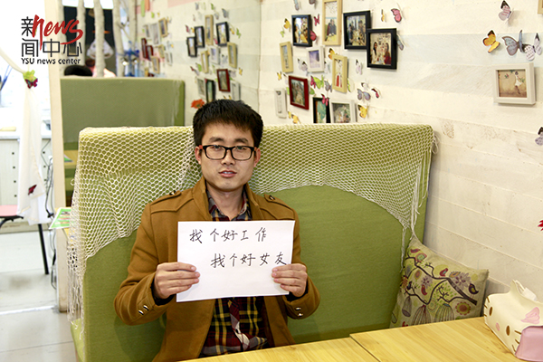 理学院王俊:“找个好工作,找个好女友。”(李阳/摄)