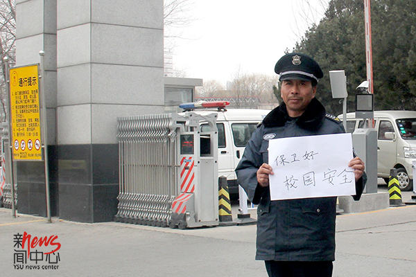 燕大正门安全工作处门卫吴凤国:“保卫好校园安全。”