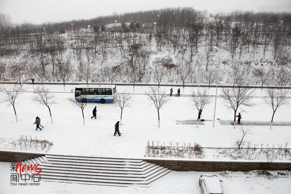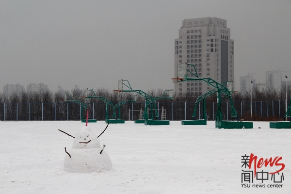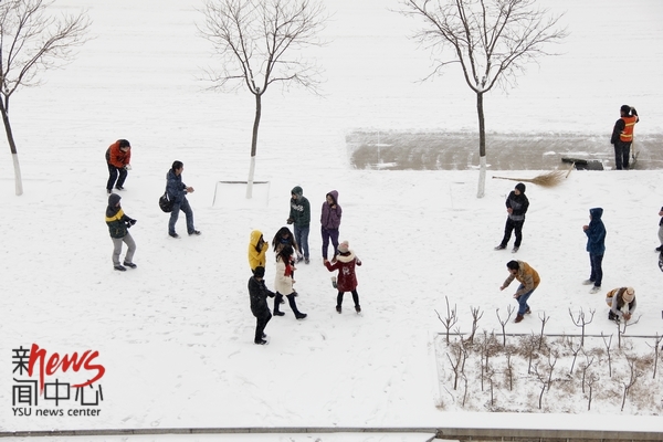 初雪的色调因为燕大的学子们而变得多彩(刘越/摄)
