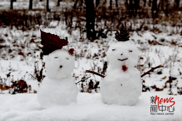 谁堆了这相亲相爱的小雪人啊?(李阳/摄)