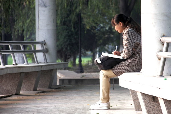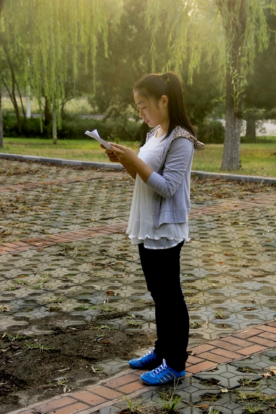 “卷袖执书心朝阳”·9月26日早7:00·西区四教旁(付心怡/摄)