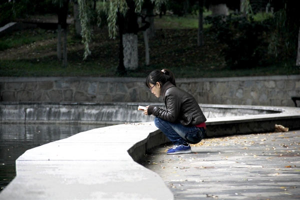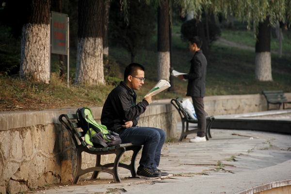 “书卷多情似故人”·10月15日早6:30·燕鸣湖边(刘欣/摄)