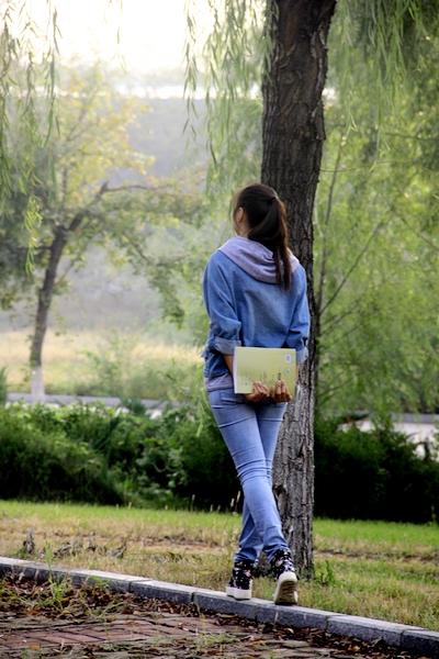 “读书不觉已秋深”·10月16日早7:00·西区一教旁(齐智颖/摄)