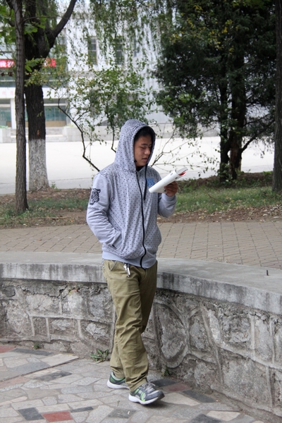 “饮其流者思其源”·2014年9月1日7:00·西校区“思源石”边(齐智颖/摄)