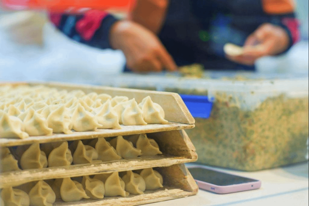 刚刚包好的饺子整齐排列,
