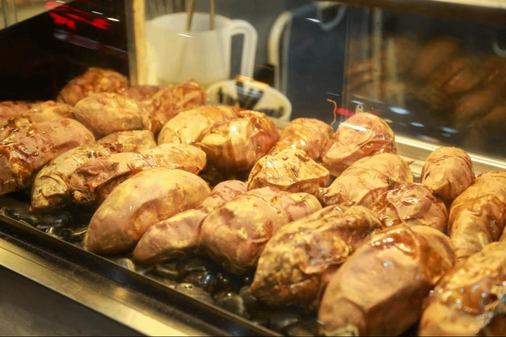 咬一口熟软的烤红薯,外皮微焦,