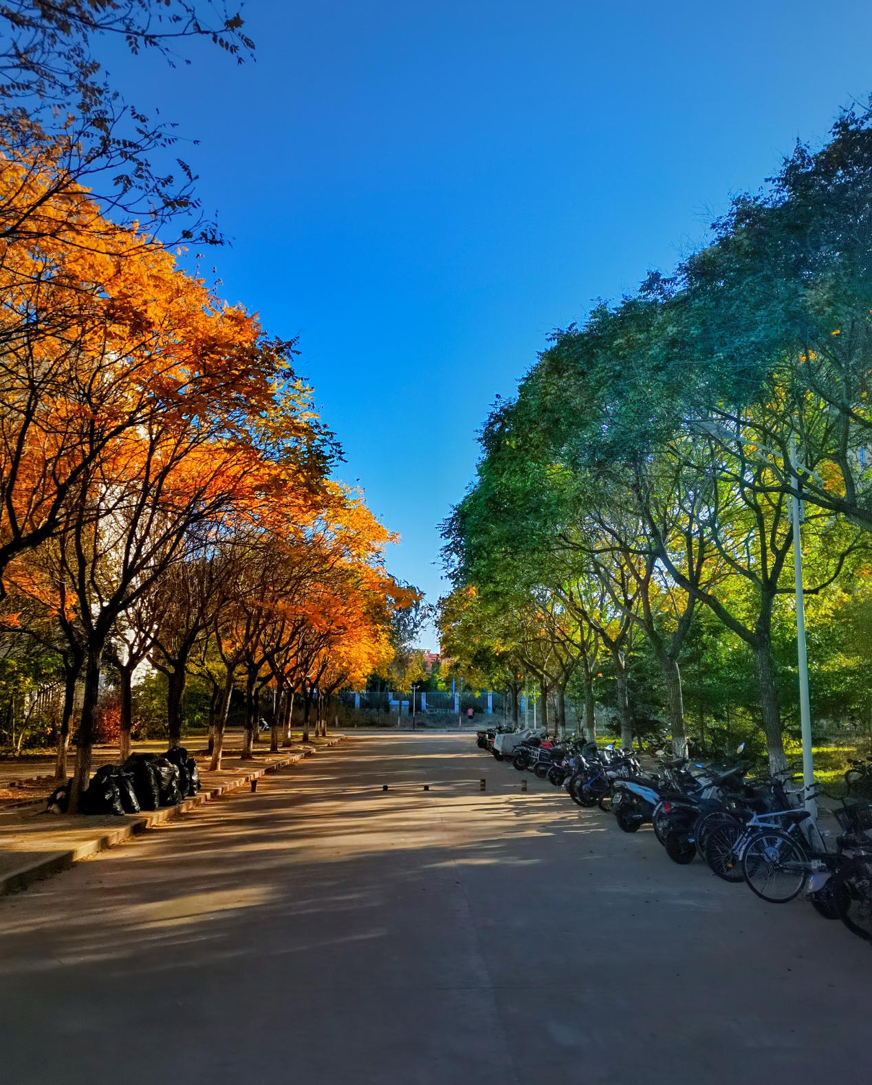 苍翠的绿叶大半都镀上了金光,燕园深秋美不胜收