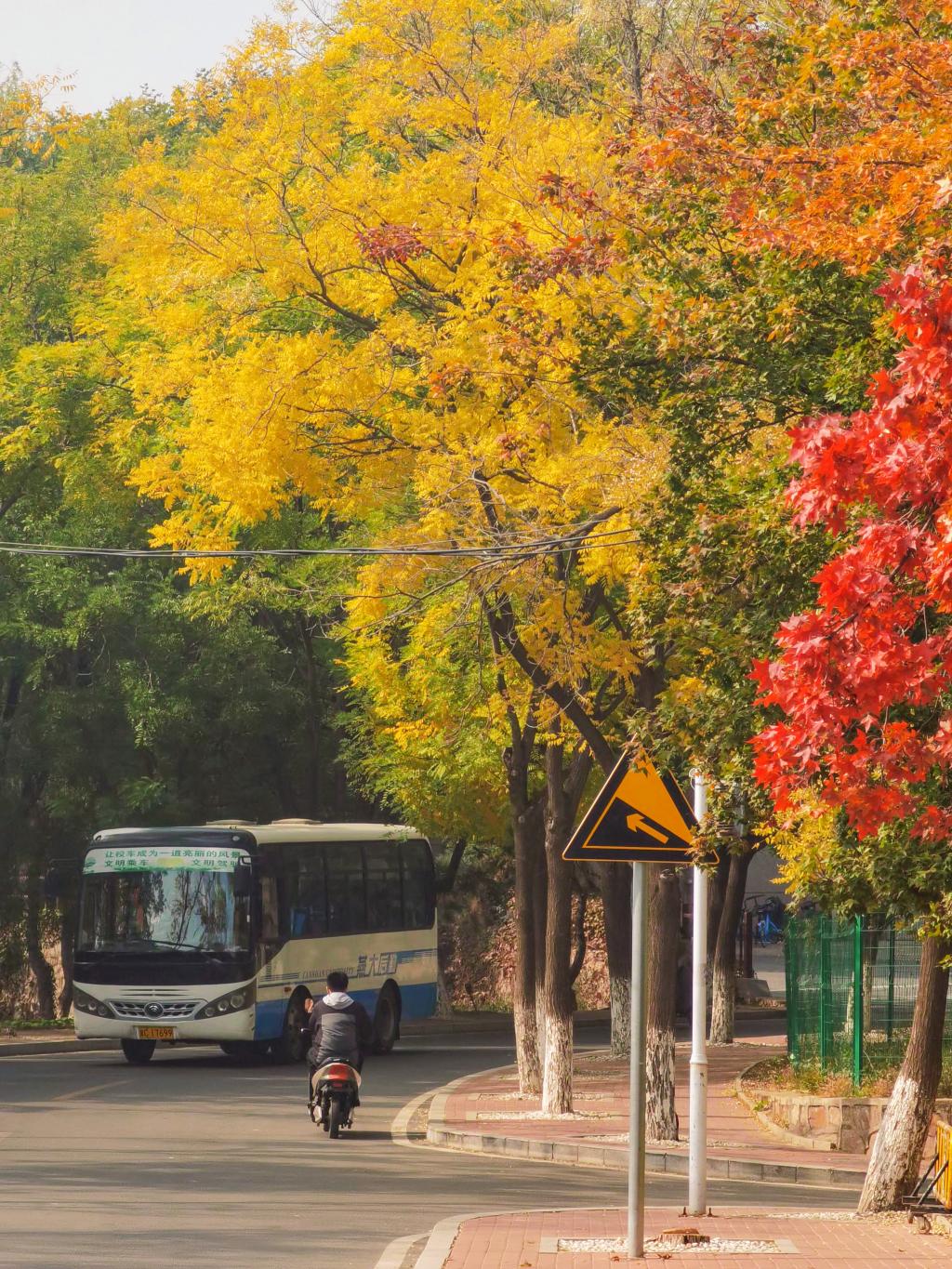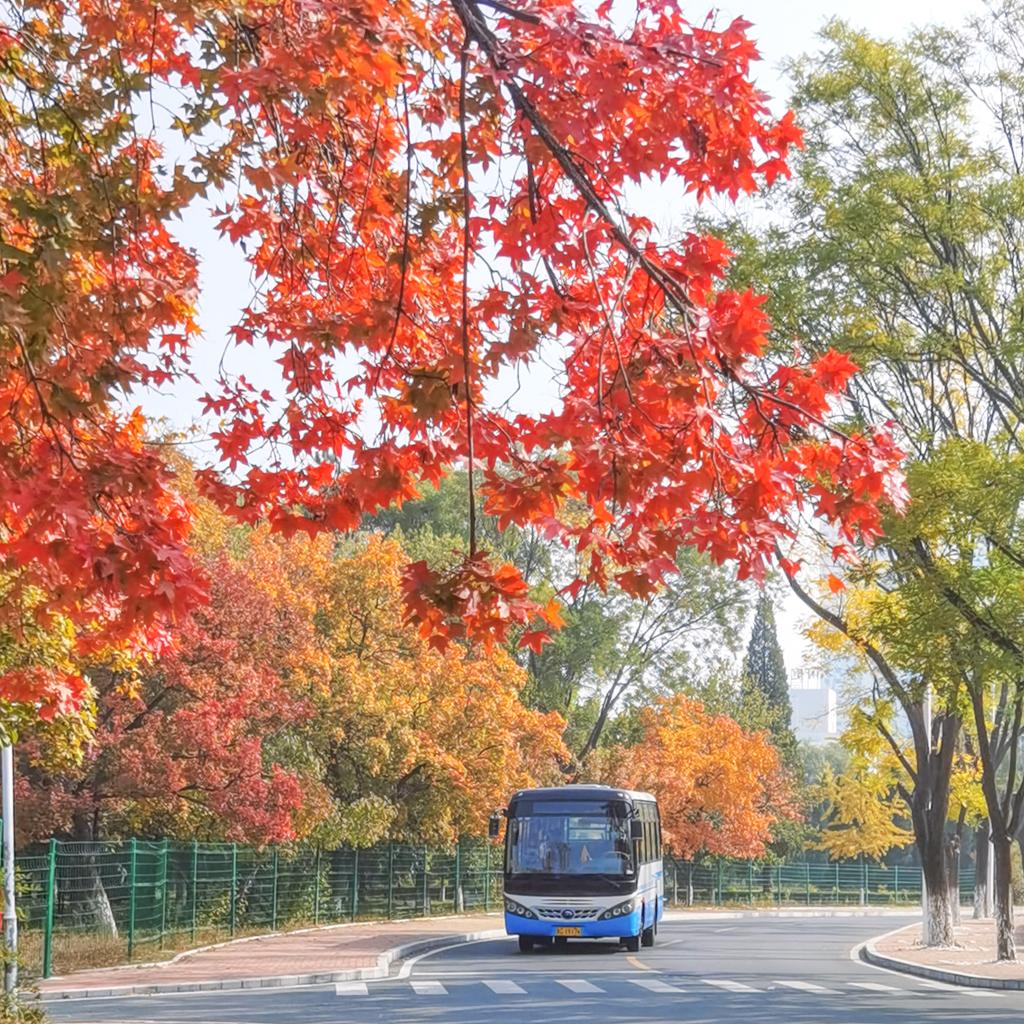 秋意渐浓,校车从色彩斑斓的希望中驶来
