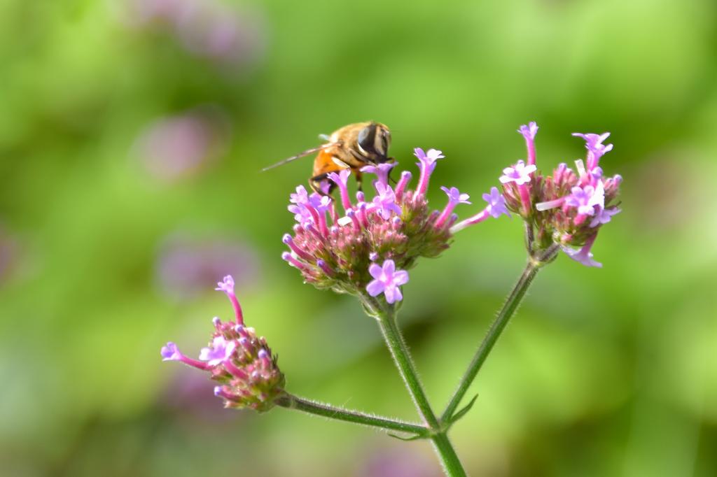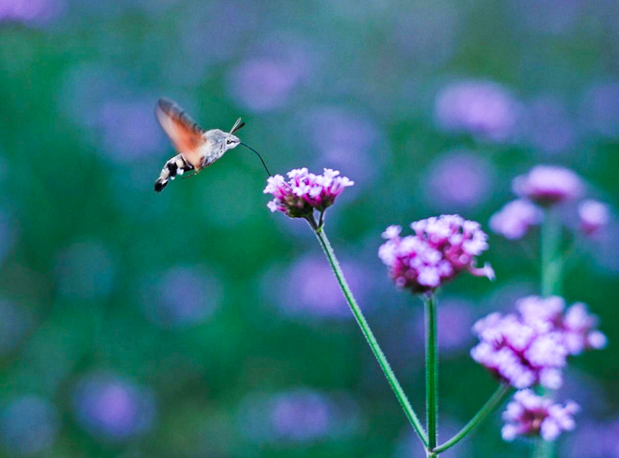 一蜂双羽扶微风,粉蕊几枝送香蜜 (王亚培摄)