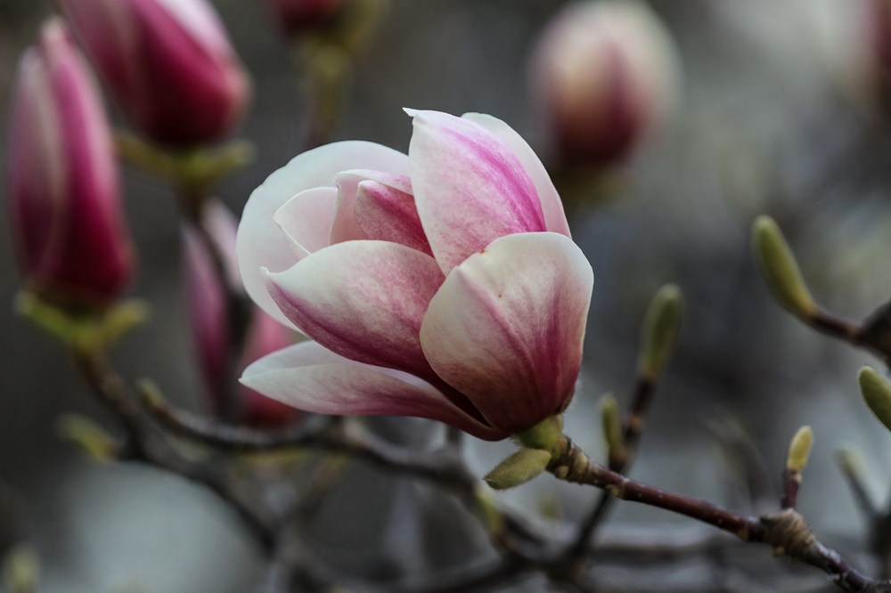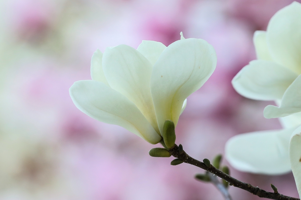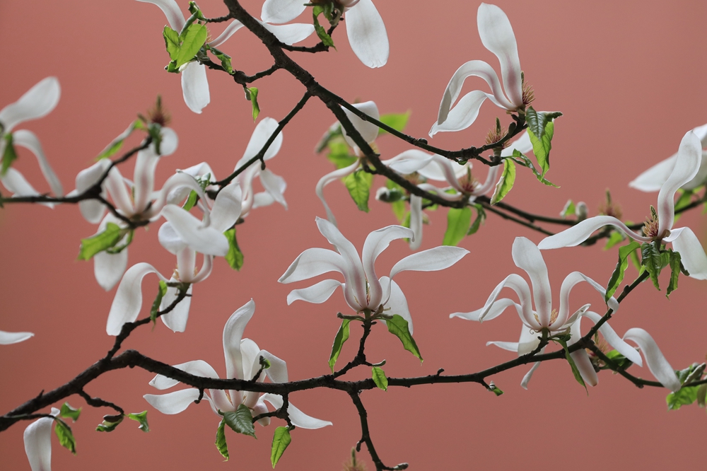 玉润妍肤花绽放,谦卑绿叶不争开。